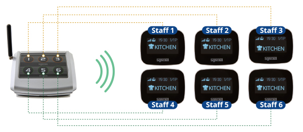 SYSCALL dysponuje największą paletą przycisków przywołujących kelnera. Nadajniki można dostosować do charakteru lokalu gastronomicznego pod względem funkcjonalności, wyglądu oraz zasięgu. Komunikat o wezwaniu zostanie odebrany przez kelnera na pagerze z najnowszej serii SB.